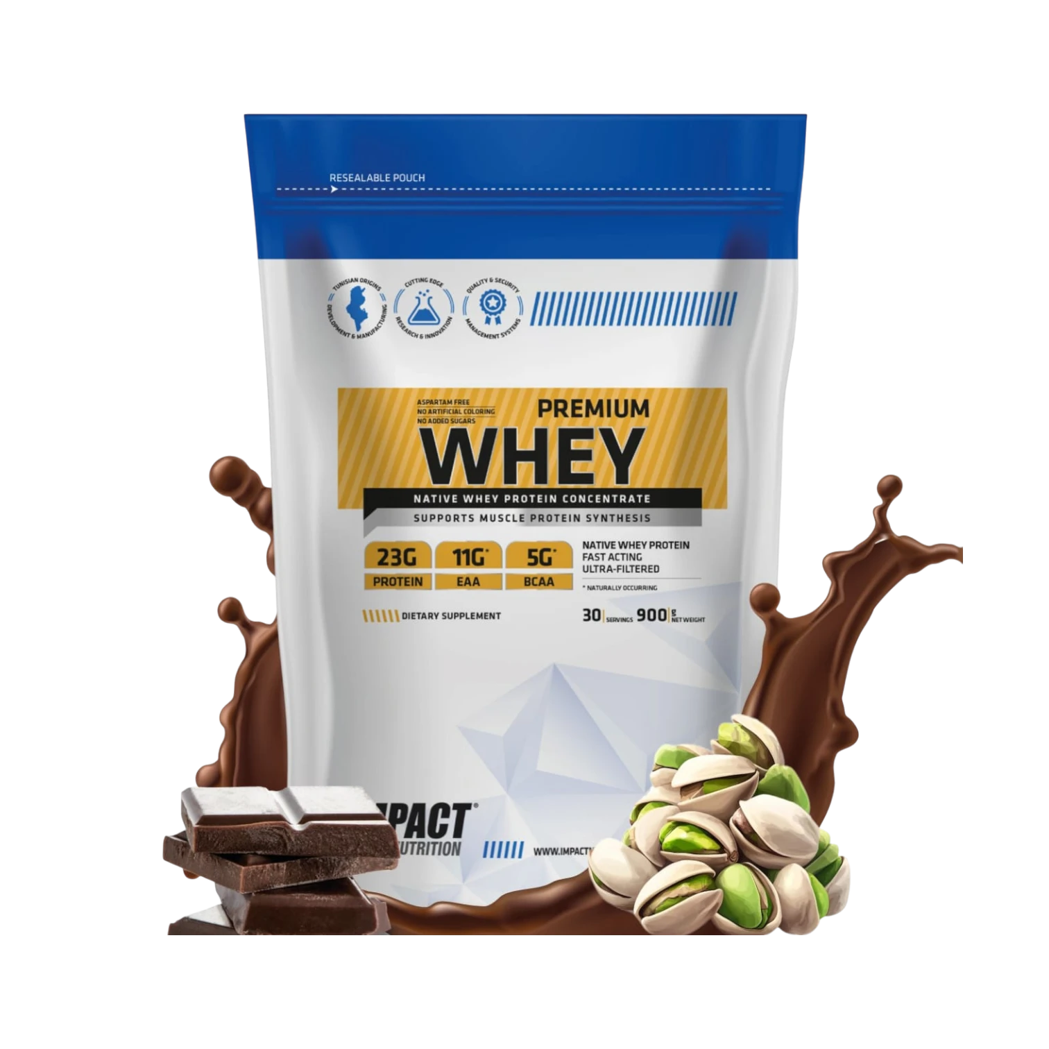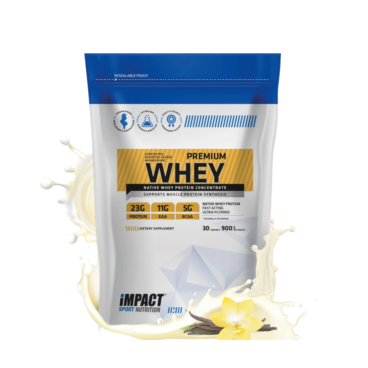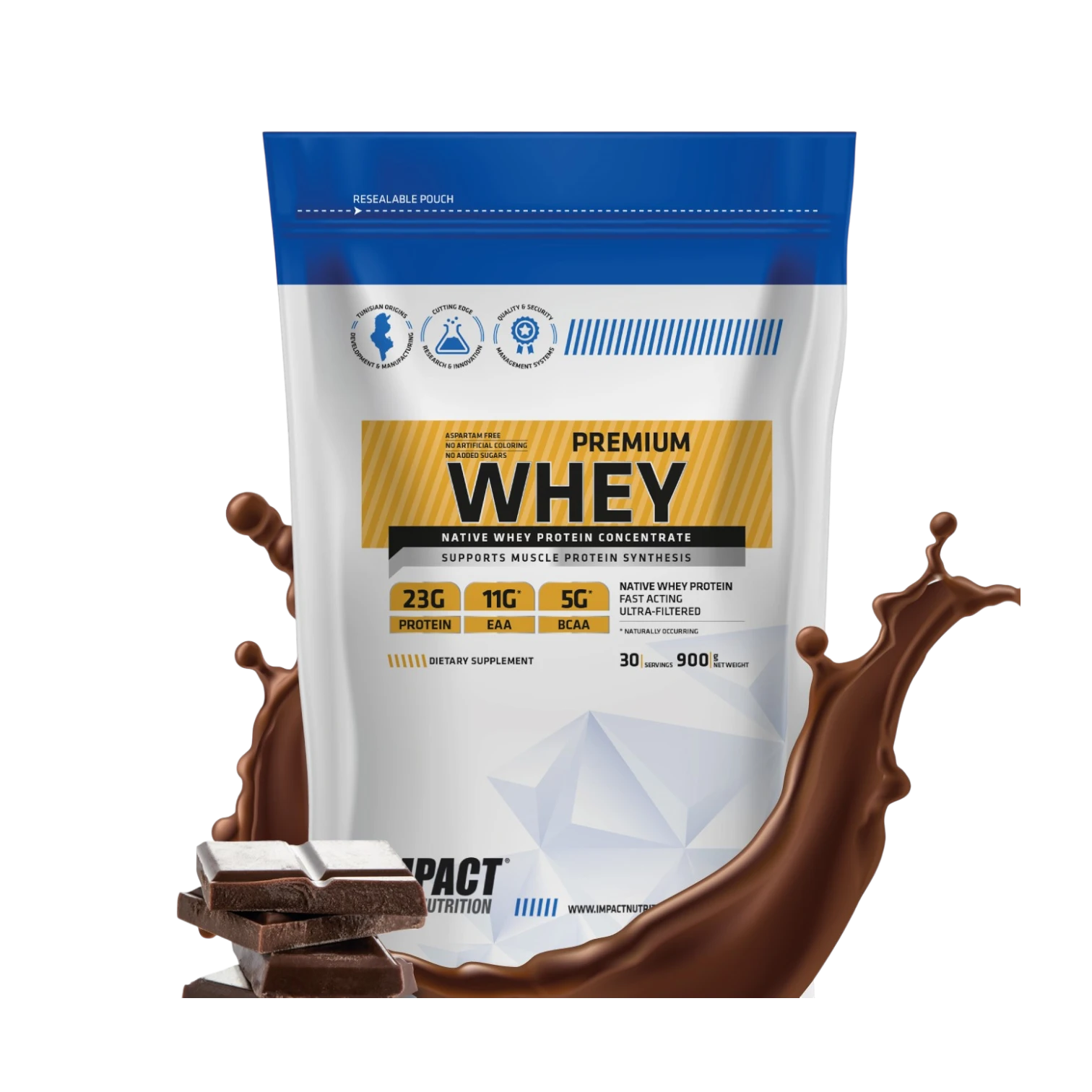 Optez pour la performance native avec la Premium Whey d'Impact Sport Nutrition. Riche en EAA et BCAA (ratio 2:1:1), cette protéine favorise une récupération immédiate et une croissance musculaire durable. Sa digestibilité optimale en fait l'alliée parfaite pour vos collations post-entraînement en Tunisie