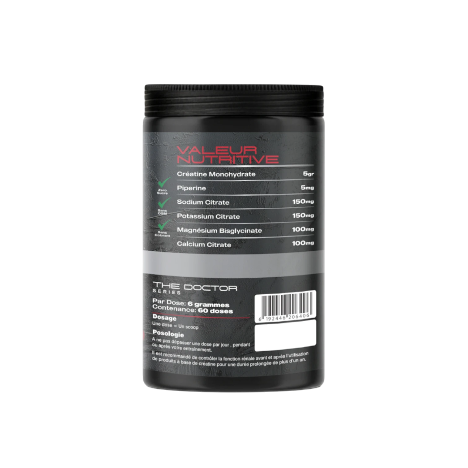La créatine monohydrate, largement étudiée scientifiquement, contribue à améliorer les performances lors d’exercices courts et intenses. L’ajout d’un complexe d’électrolytes permet un soutien musculaire et hydrique optimal.