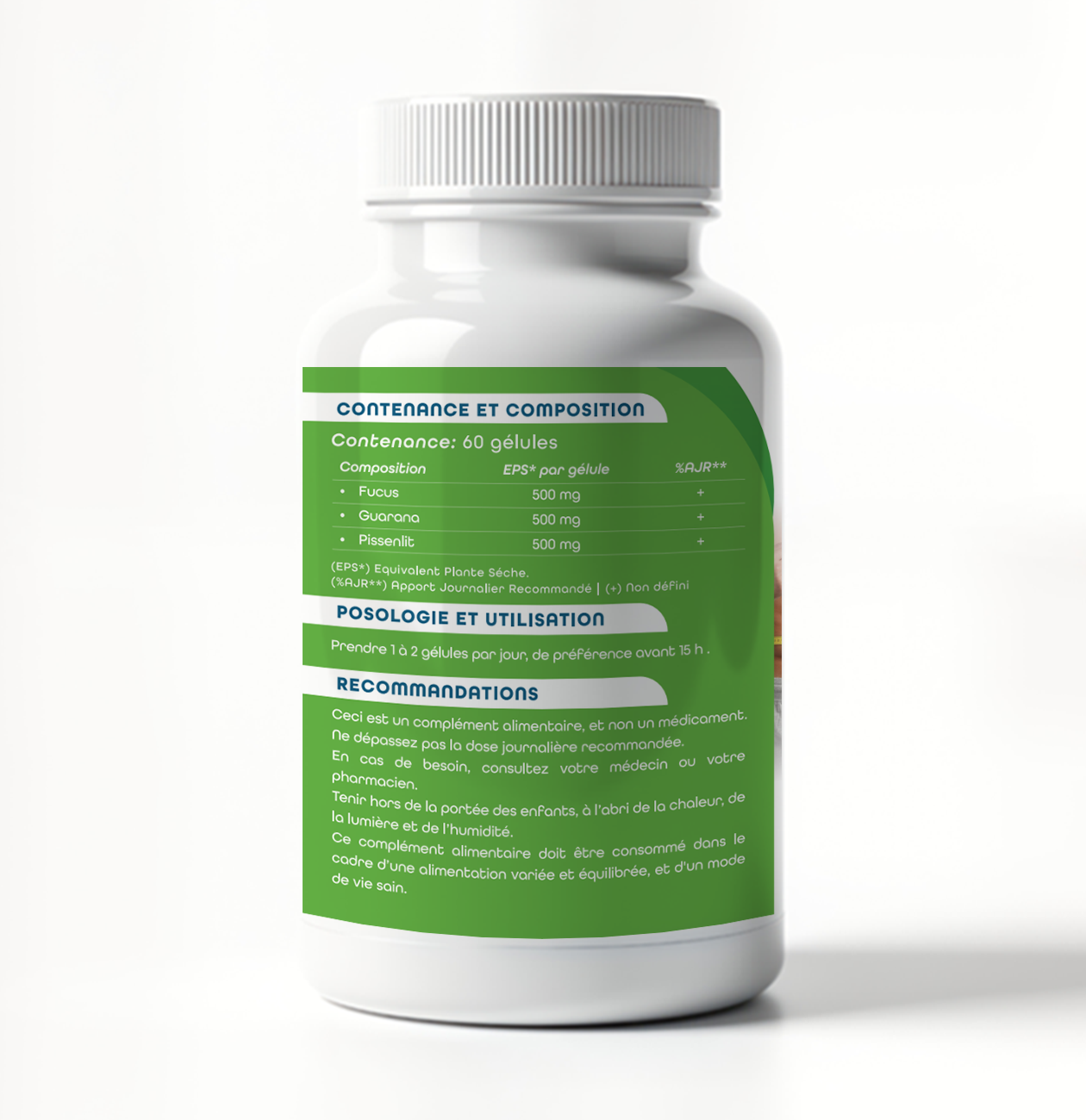 Combustion des Graisses : Le Fucus et le Guarana agissent de concert pour stimuler le métabolisme de base et favoriser une performance maximale dans l'élimination des graisses.